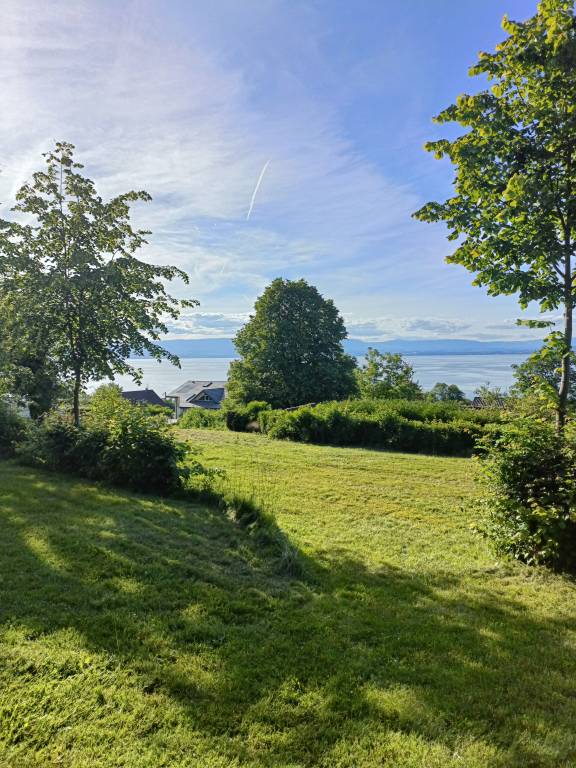 Le terrain en cascade garantit une disposition en gradins, minimisant les vis-à-vis et offrant une vue imprenable sur le Lac Léman.